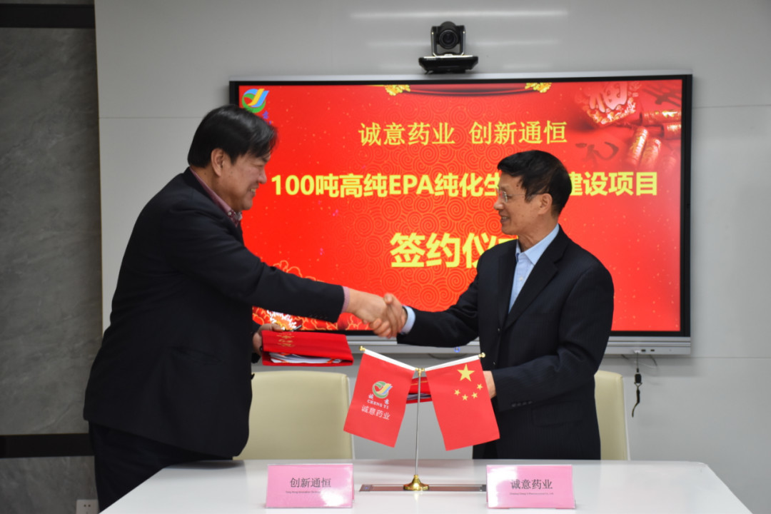熱(rè)烈祝賀創新通(tōng)恒&誠意藥業(yè)成功簽約年(nián)産100噸高(gāo)純度魚油生(shēng)産線!
